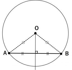 ② 円の弦の垂直二等分線は、その円の中心を通る。