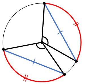 円の弧の両端と中心を結ぶ二本の半径がつくる角