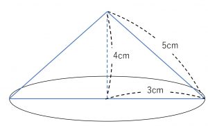 \(円錐の体積 = 3^2\pi\times 4\times \frac{1}{3} = 12(cm^3) \)