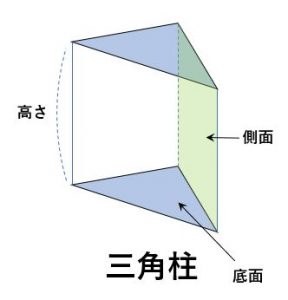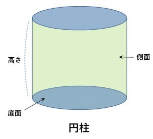 ① \(角柱・円柱の表面積=底面積\times2+側面\)