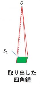 \(四角錘の体積 = \frac{1}{3}S_1 r\)