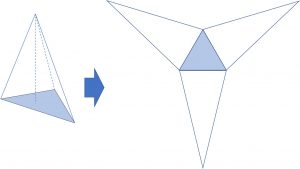 底面の面積を底面積。側面全体の面積を側面積と言う。立体全体の表面全体の面積を表面積という。
