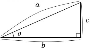 直角三角形なので、\(0 < \theta < \pi/2 \)となる。