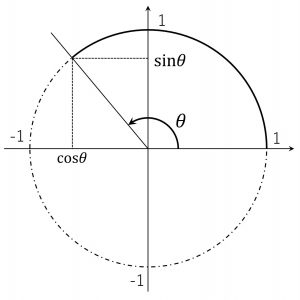そこで\(xy\)平面上で半径1の円(単位円)を考えて定義しなおす。