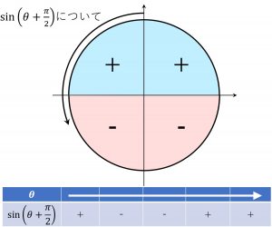 \(\sin(\theta +\frac{\pi}{2})\)の正負について考えると、