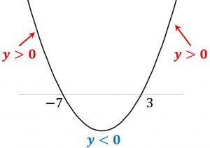 例1).\((x+7)(x-3) \gt 0 \quad の時のx\)の範囲を求める。