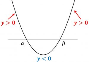 \(y=(x- \alpha)(x-\beta)\)のグラフを用いて