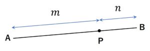 ・線分AB上を\(m:n\)に内分する点Pは、\(AP:BP=m:n\)の関係性にある。