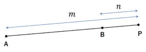 ・線分ABを\(m:n\)に外分する点Pは、\(AP:BP=m:n\)の関係性にある。